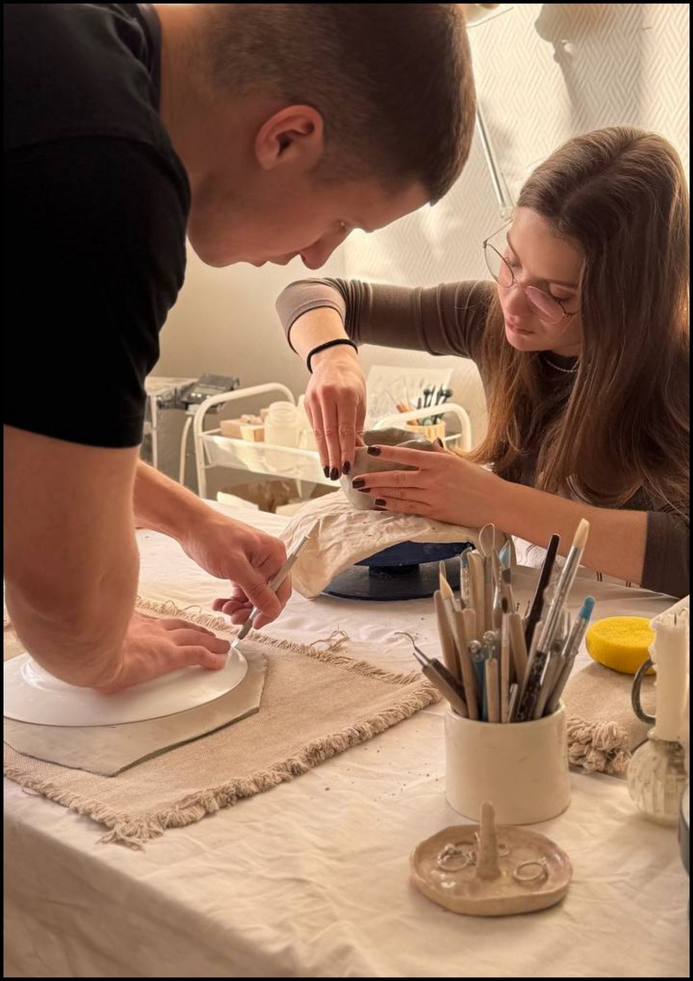 Здесь вы не только освоите искусство лепки, но и проведёте время в уютной и спокойной атмосфере, узнавая друг друга лучше. Это прекрасный опыт: подарите друг другу яркие эмоции и незабываемые моменты. Работая с глиной, откроете новые грани друг друга и станете ещё ближе. Индивидуальные изделия: каждое созданное вами изделие будет символизировать вашу уникальную связь.