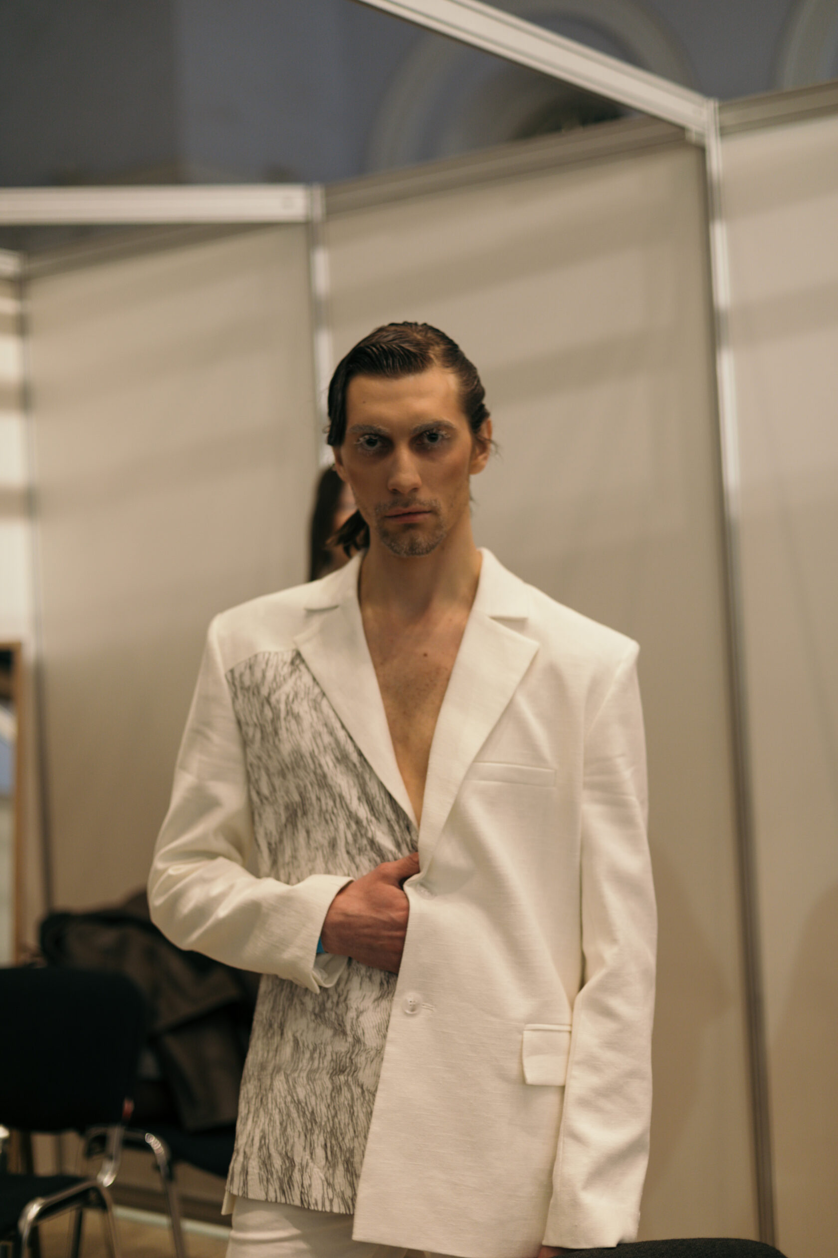 Когда я ее нарисовала, поняла, что все очень скучно. Для меня подиум — это шоу, выражение, а тут ничего не происходит и, больше скажу, внутри нет радости. Стала думать, какую именно тему я хочу развить, чтобы это нашло отражение в гардеробе, потому что одежда пластична: складки, драпировки, многослойность.